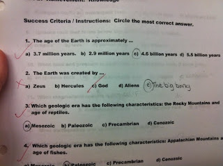 7. De tycker att de är smartare och mer rationella än alla andra. Detta stämmer givetvis inte, men bilden som illustrerar detta gör det hela helt hysteriskt. På frågan om vem som skapade jorden, får en elev välja någon av olika gudar eller rymdvarelser. Vi ska förstå elevens arrogans av att han vill svara The Big Bang.