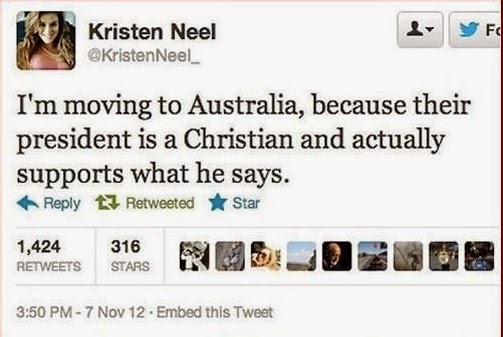 Det roliga med detta tweet är inte att Kristen Neel går med Gud, utan att Australiens kvinnliga premiärminister är ateist, vilket gör att jag tror att Shepherd och Stopera valde denna som en givaway för sitt trollande.