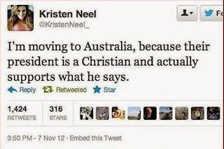 Och så vidare. Men slutknorren är mitt starkaste belägg för att detta egentligen handlar om trolleri. Shepherd och Stopera citerar en twittrare som skriver ”jag flyttar till Australien eftersom deras president är kristen och står för vad han säger”.