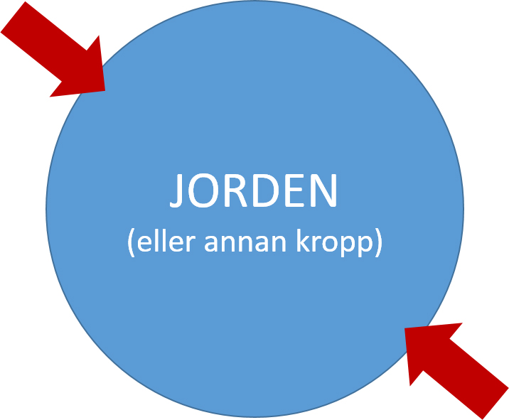 Om man förstorar en sfär tillräckligt mycket, så kommer kurvan som utgör ytan att likna en plan yta. Och eftersom planeten vi står på är större än illustrationen ovan, så borde ytan se mer platt ut. Men inte helt.