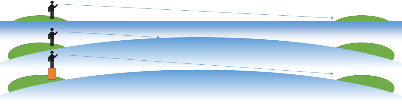 Jag frågade en pannkaksmänniska på Twitter om varför man inte ser land på andra sidan havet när man står vid stranden av ett halvmils brett sund. Han sa att man skulle ta sig högre upp och skaffa sig bättre utrustning. Båda tipsen kräver sitt ifrågasättande. Att ta sig högre upp är inte relevant om jorden är platt, eftersom det är en rund jords horisont man vill undvika för att se långt.